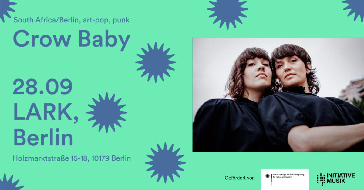 The Berlin based duo, Crow Baby, is the love child of Cherilyn MacNeil and Jean-Louise Parker, both born and raised in Johannesburg, South Africa, and each a songwriter and multi-instrumentalist with her own projects. In 2020 they reunited in Berlin and started a standing Friday afternoon playdate as a respite during the Covid lock down. The result is a fearsome and wholly original Art Pop band – “with a punk spirit!” – which pairs a mischievous, upbeat sound with delightfully wry lyrics: a cheerleader with a mean, messy streak.